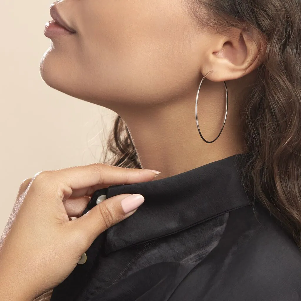 Créoles Or Blanc 375/1000 Fil Flexible Lisse Largeur 1.2mm Diamètre 50mm