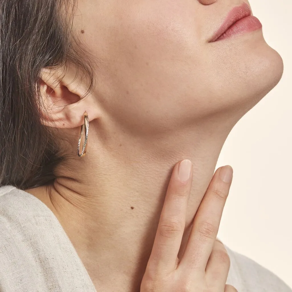 Créoles Or Jaune 375/1000 Fil Vrillé Effet Diamanté Largeur 2.9mm Diamètre 32.2mm