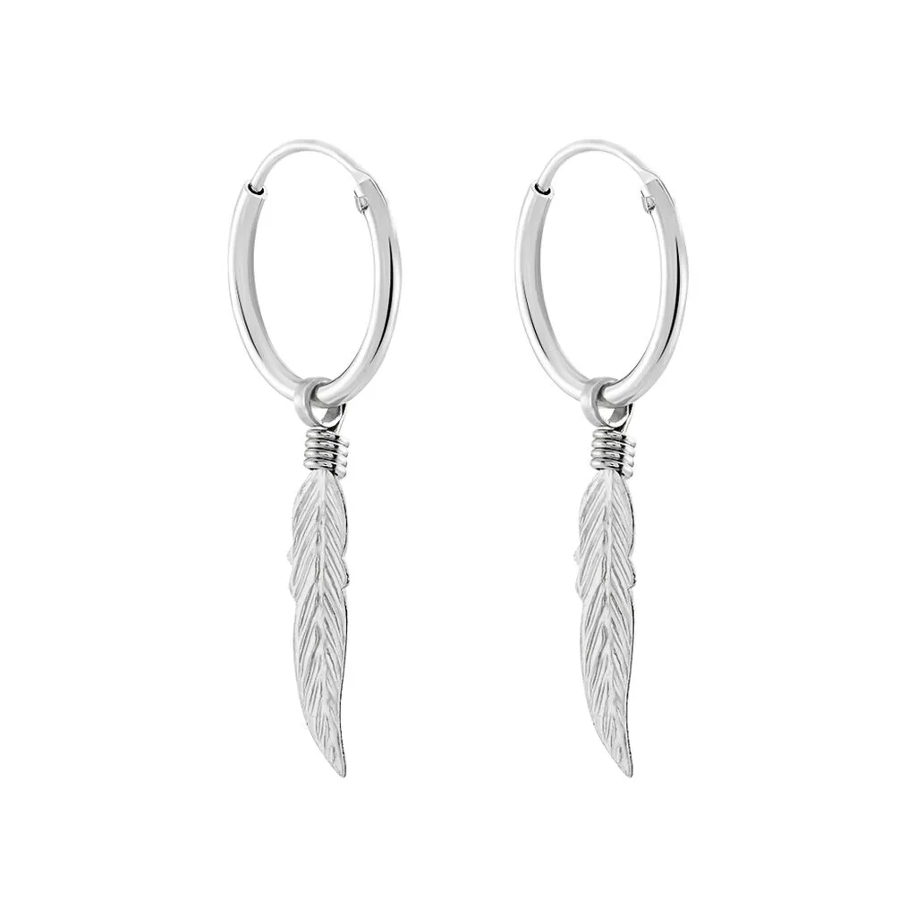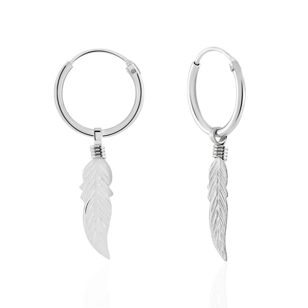 Creoles Argent Blanc 925/1000 Pampilles Motifs Plumes Diametre 12mm