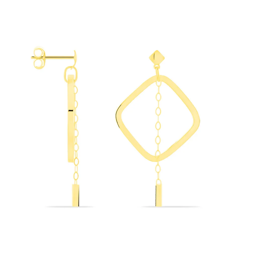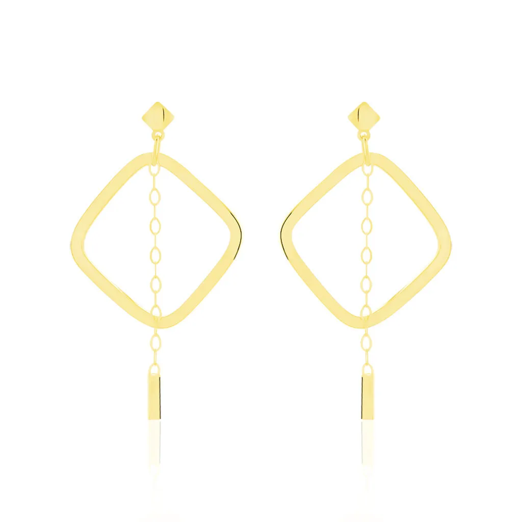 Créoles Or Jaune 375/1000 Carrées Chaîne Fil Diamètre 15mm Largeur 1.2 Mm