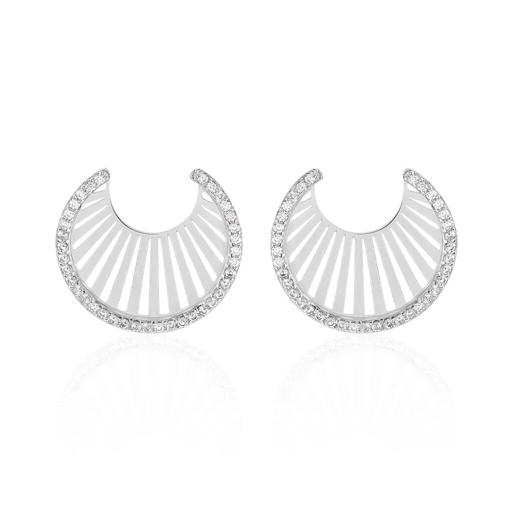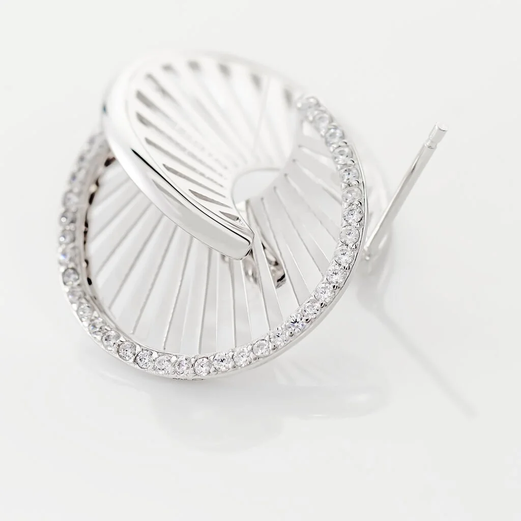 Creoles Pleines Argent 925/1000 Soleil Ajoure Micro Setting Oxydes De Zirconium