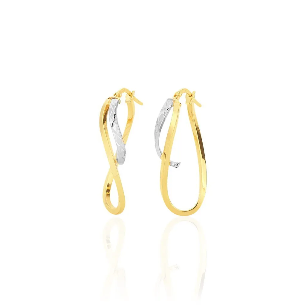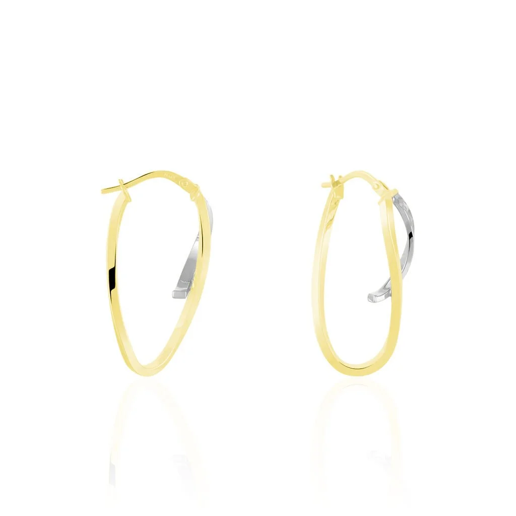 Créoles Or Bicolore 375/1000 Deux Fils Carrés Dont Un Fil Effet Diamanté Largeur 1.4mm Diamètre 27x10mm