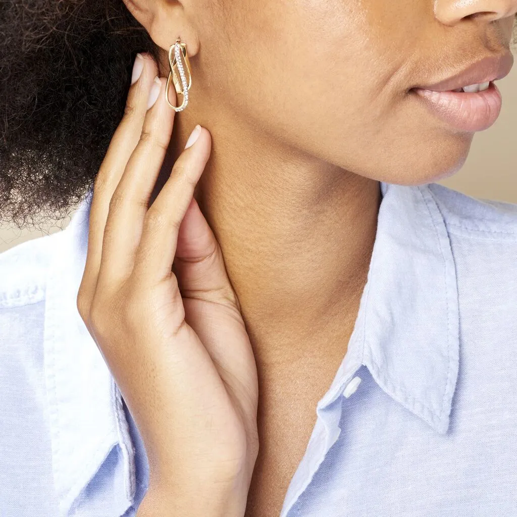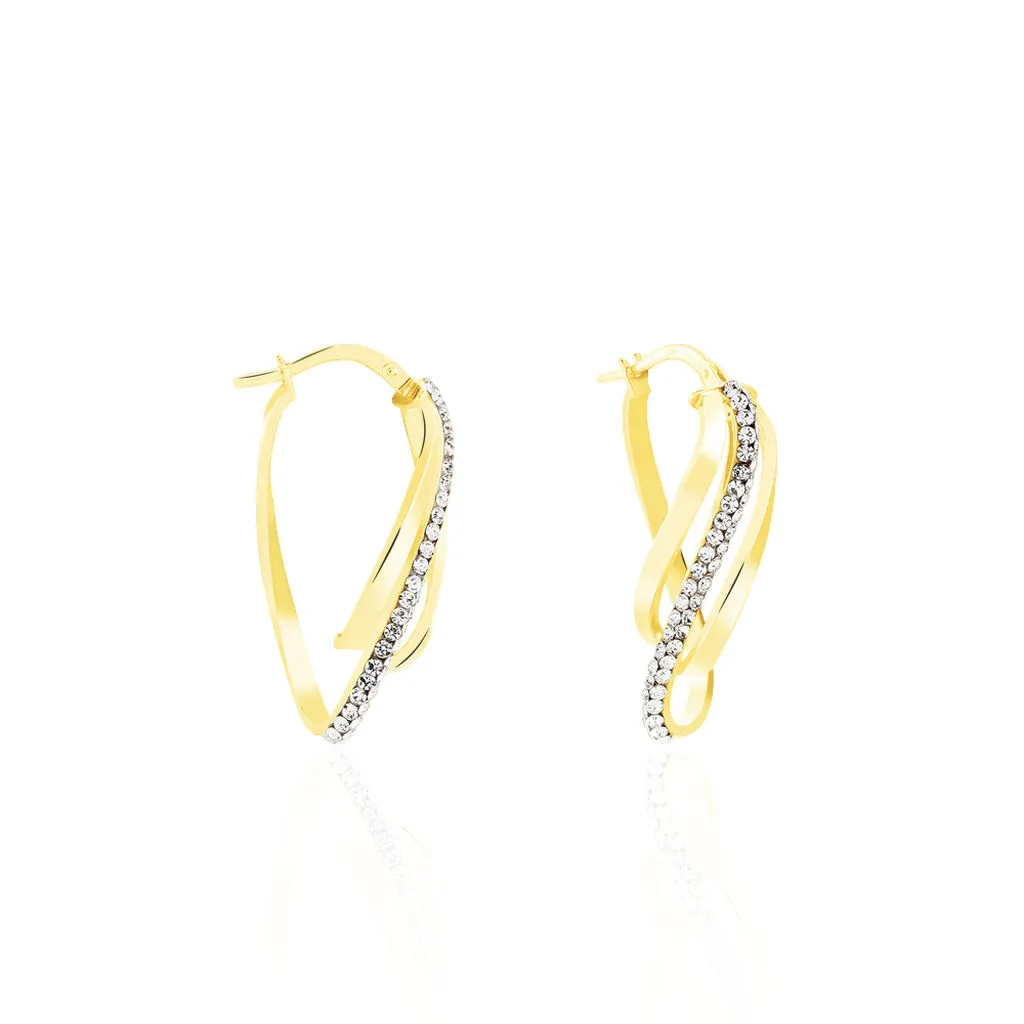 Créoles Or Jaune 375/1000 Trois Fils Carrés Dont 1 Fil Avec Strass Largeur 2mm Diamètre 27x8mm