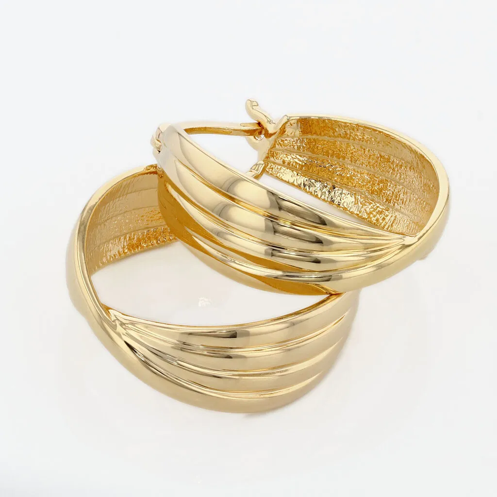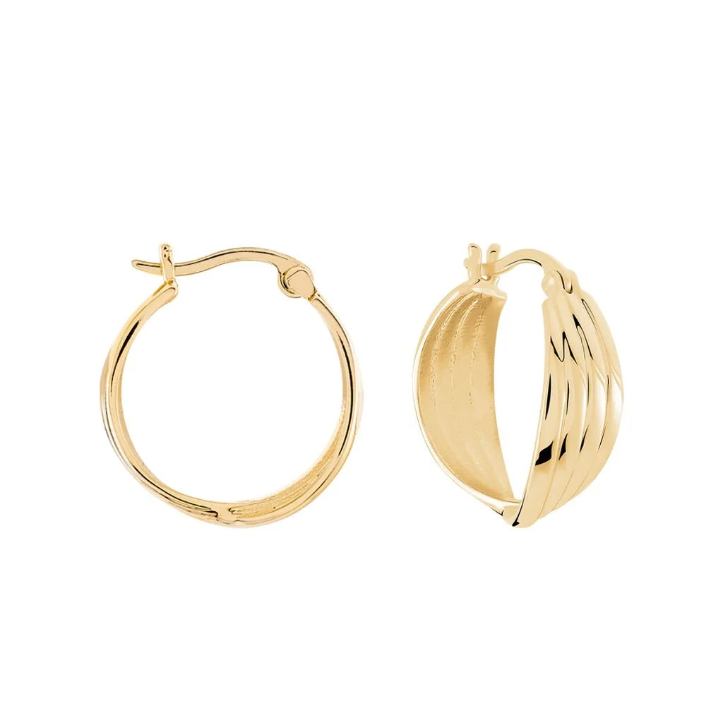 Creoles Plaqué Or Jaune Effet Strie Diametre 20mm