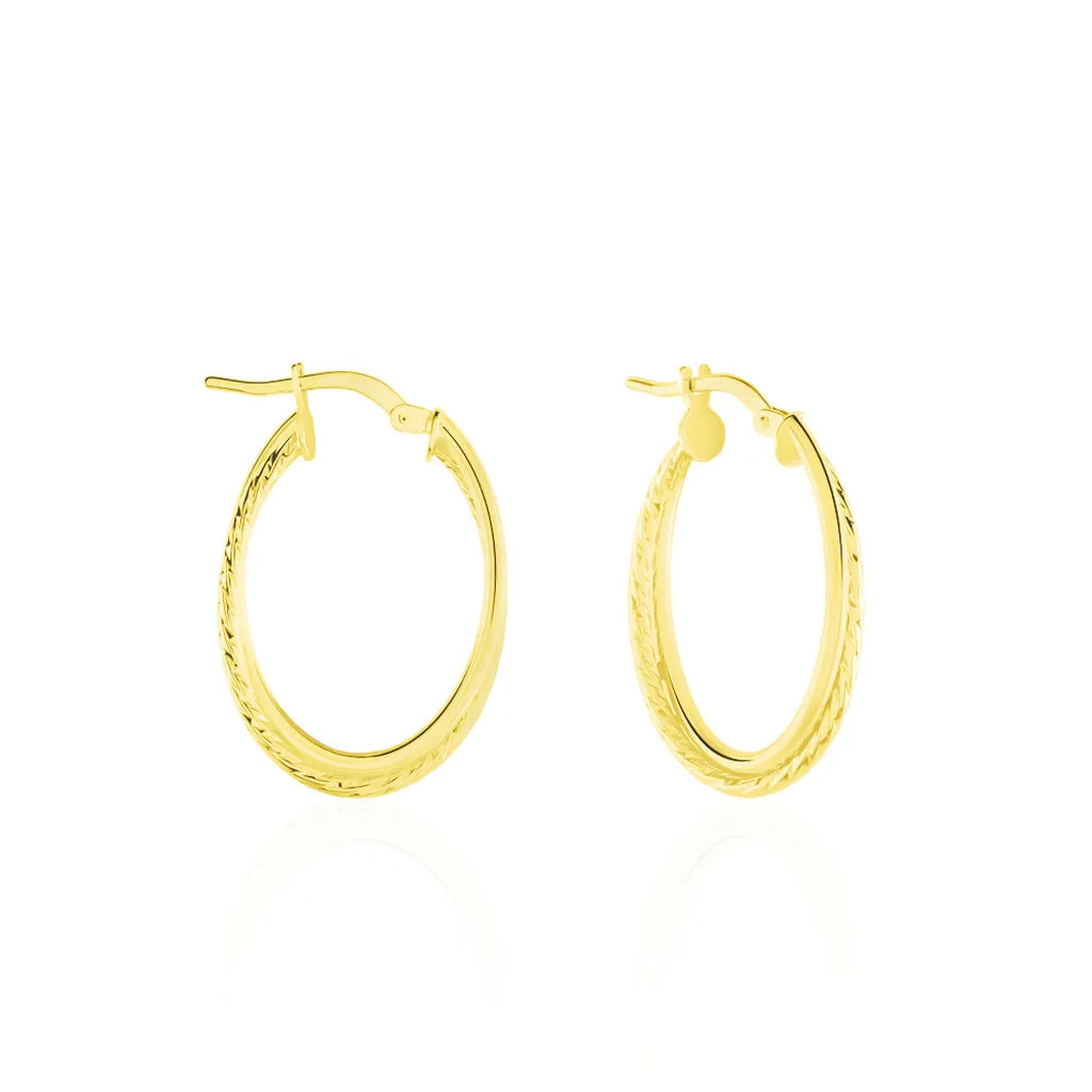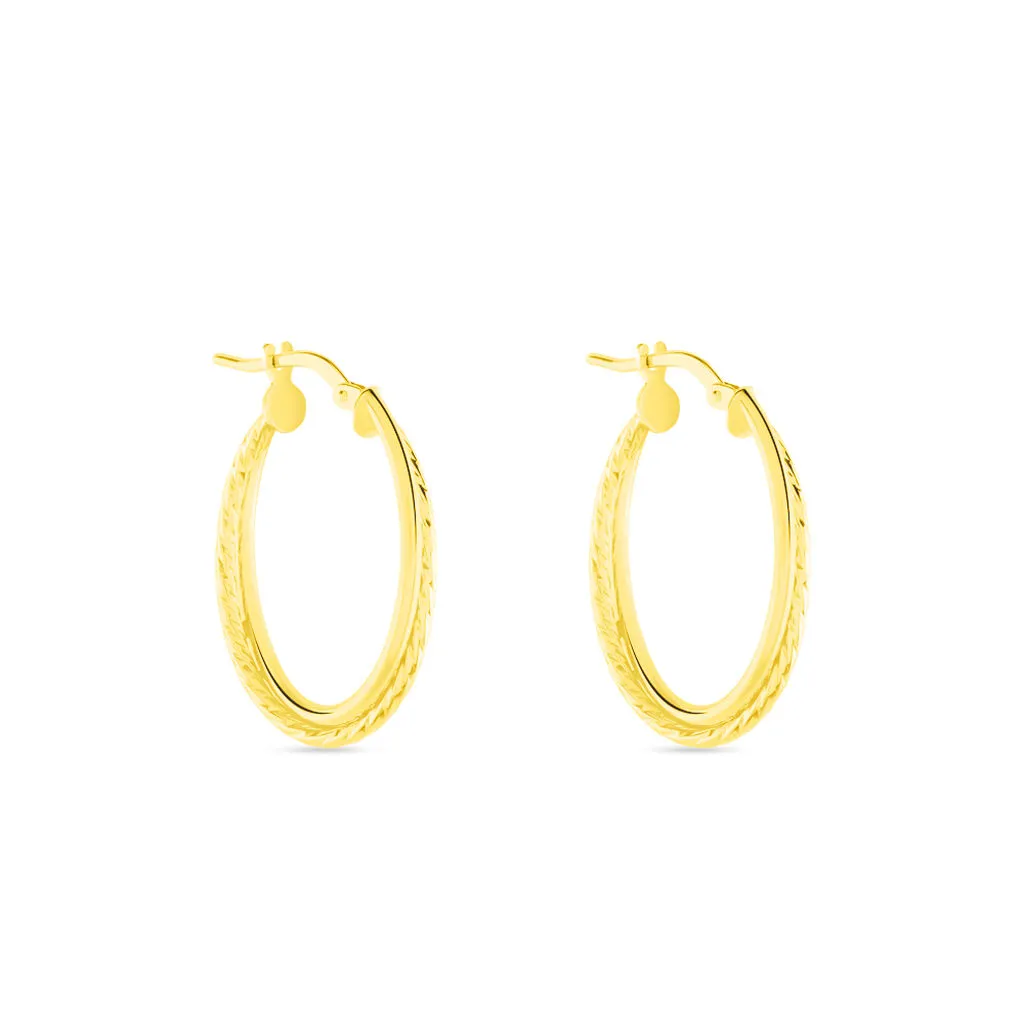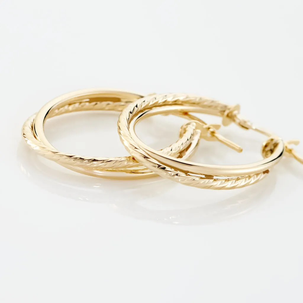 Créoles Or Jaune 375/1000 Ovales Croisées Fils Ronds Lisse Et Torsadé Largeur 1.5mm Diamètre 15x23mm