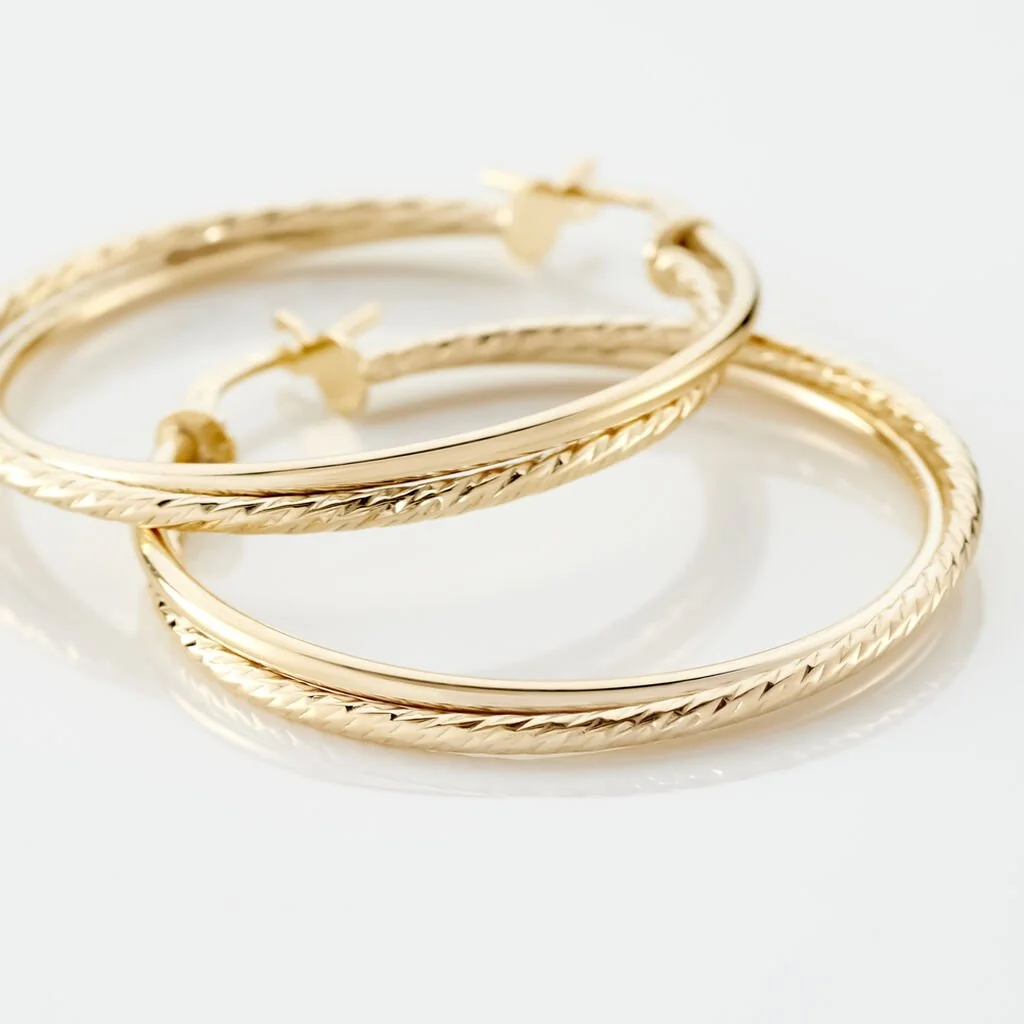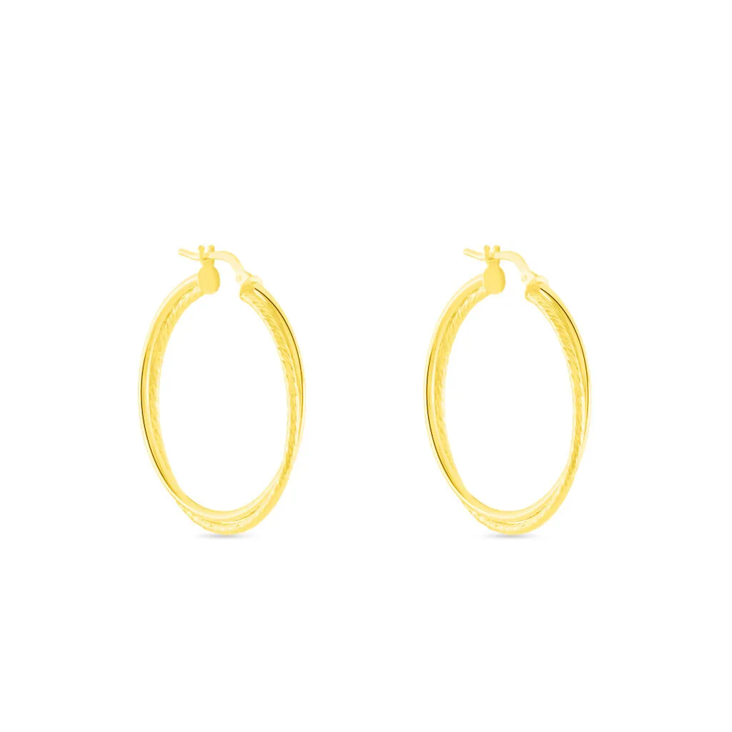 Créoles Or Jaune 375/1000 Croisées Fils Ronds Lisse Et Torsadé Largeur 1.5mm Diamètre 30mm