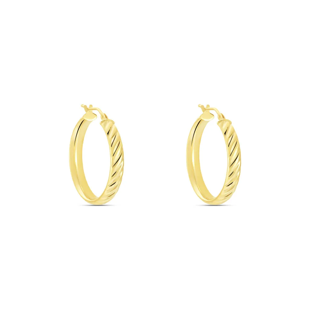 Créoles Or Jaune 375/1000 Fil Demi Jonc Strie Largeur 4mm Diamètre 20mm