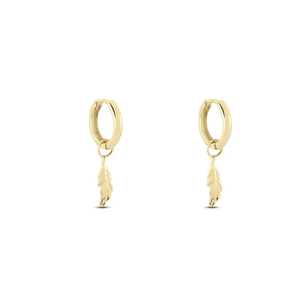 Créoles Plaque Or Pampilles Plumes Diamètre 9mm