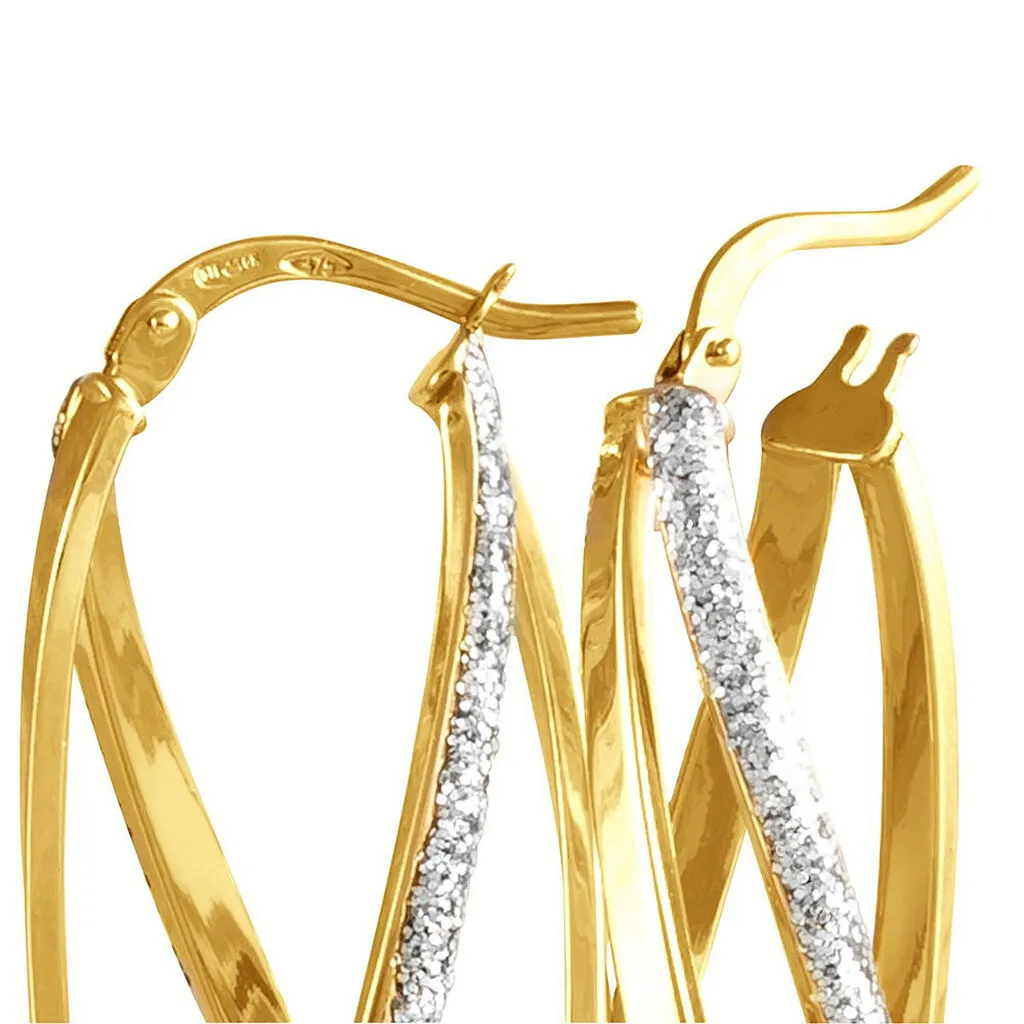 Créoles Or Bicolore 375/1000 Ovales Deux Fils Carrés Dont Un Fil Effet Diamanté Largeur 1.1mm Diamètre 19×13.5mm