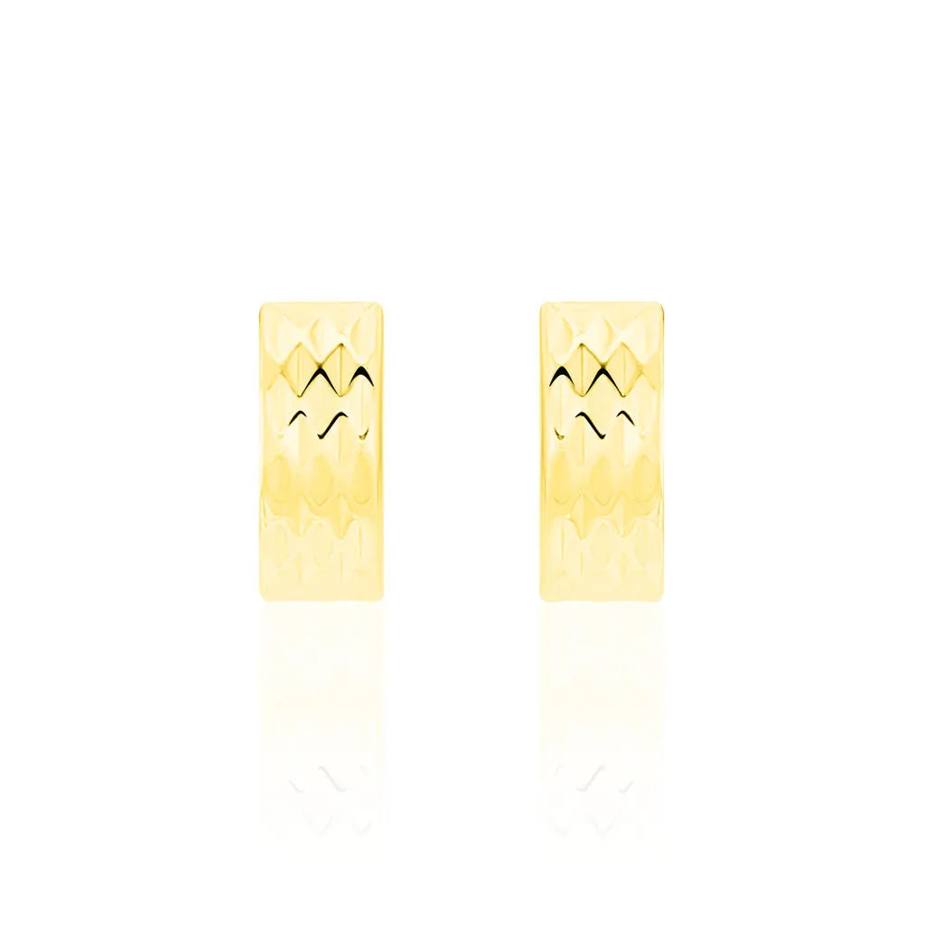Créoles Or Jaune 375/1000 Demi Cercle Diamantées Losanges Diamètre 11.2mm