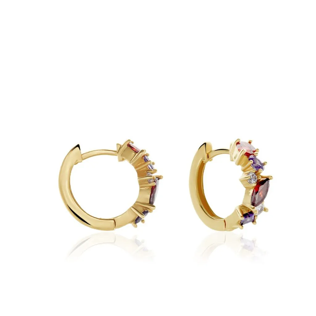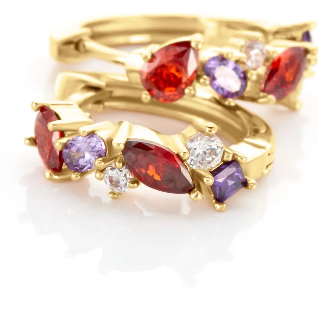 Creoles Plaque Or Jaune Multi Oxydes De Zirconium Multi Rouges Et Violet Diametre 15mm 1.5mm