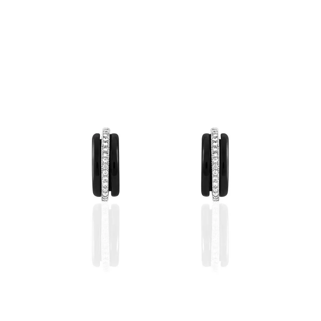 Demi Creoles Ceramik Design Argent Blanc 925/1000 Et Ceramique Noire Pavage Oxydes De Zirconium
