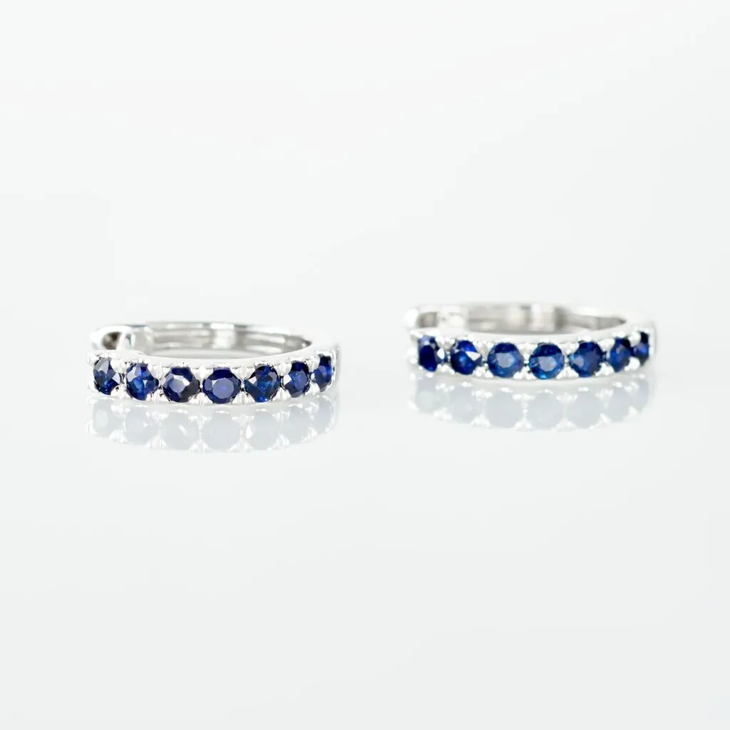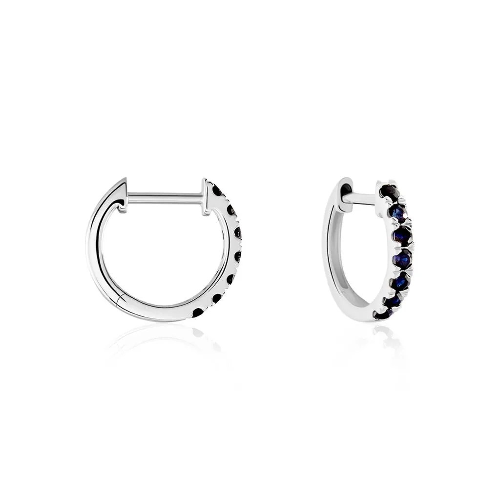 Créoles Or Blanc 375/1000 Pavage Saphir Bleus 12mm