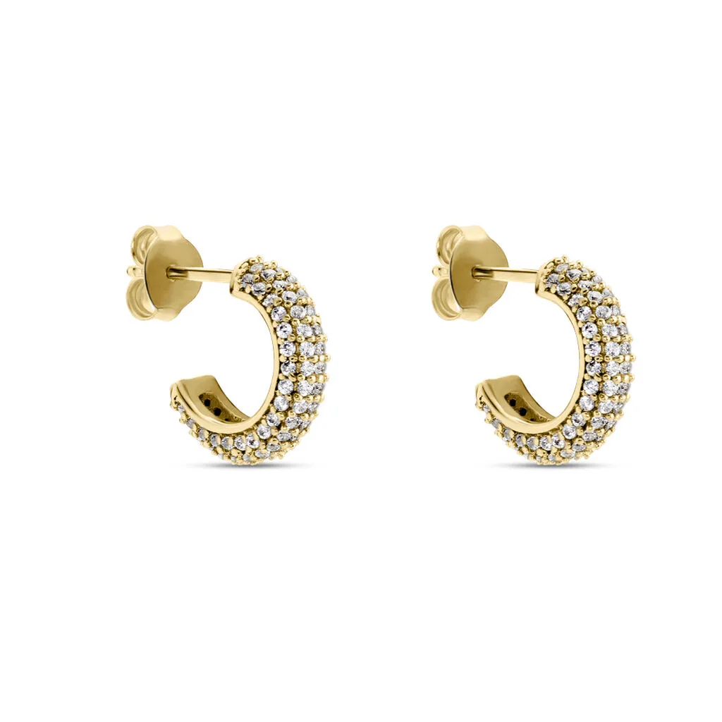 Créoles Plaqué Or Jaune Pavage Oxydes De Zirconium Diamètre 14mm
