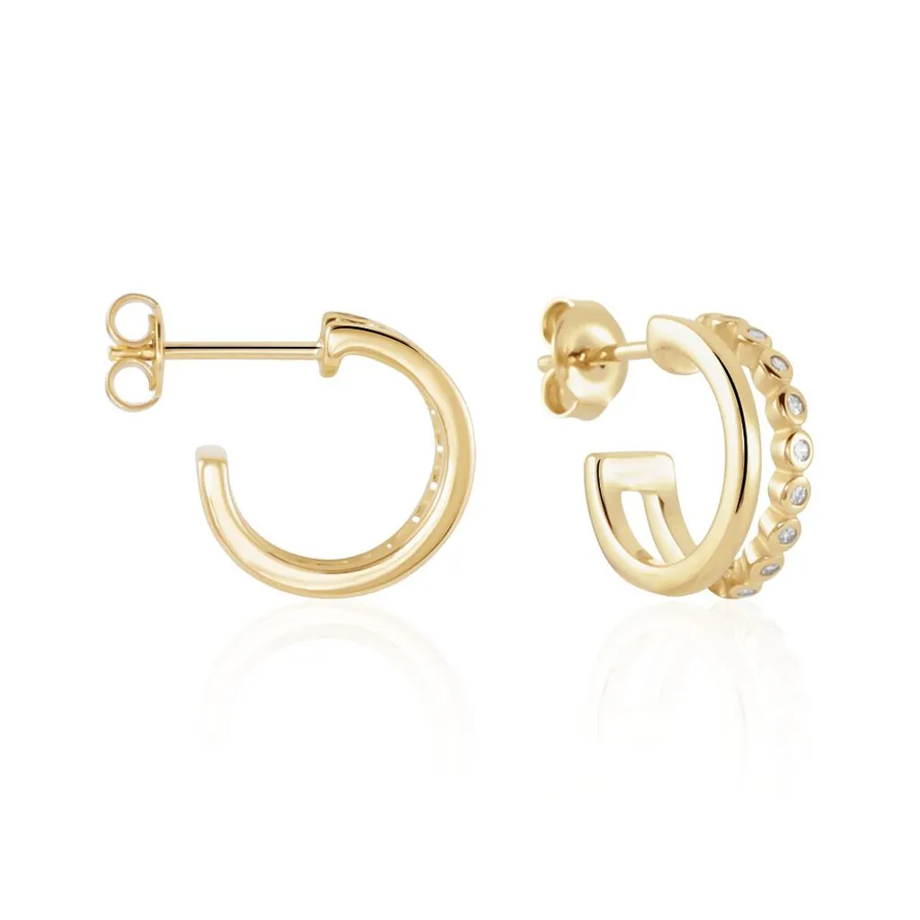 Creoles Plaque Or Jaune Double Rang 1 Rang Oxydes De Zirconium Serti Clos Diametre 12mm
