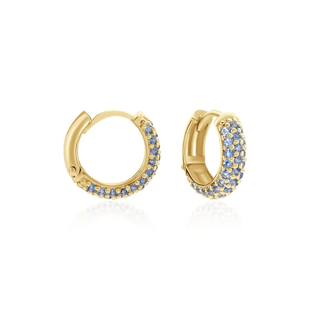 Créoles Plaqué Or Jaune Pavage Oxydes De Zirconium Bleus Diamètre 7mm