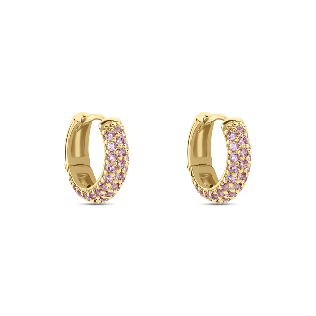 Créoles Plaqué Or Jaune Pavage Oxydes De Zirconium Roses Diamètre 7mm