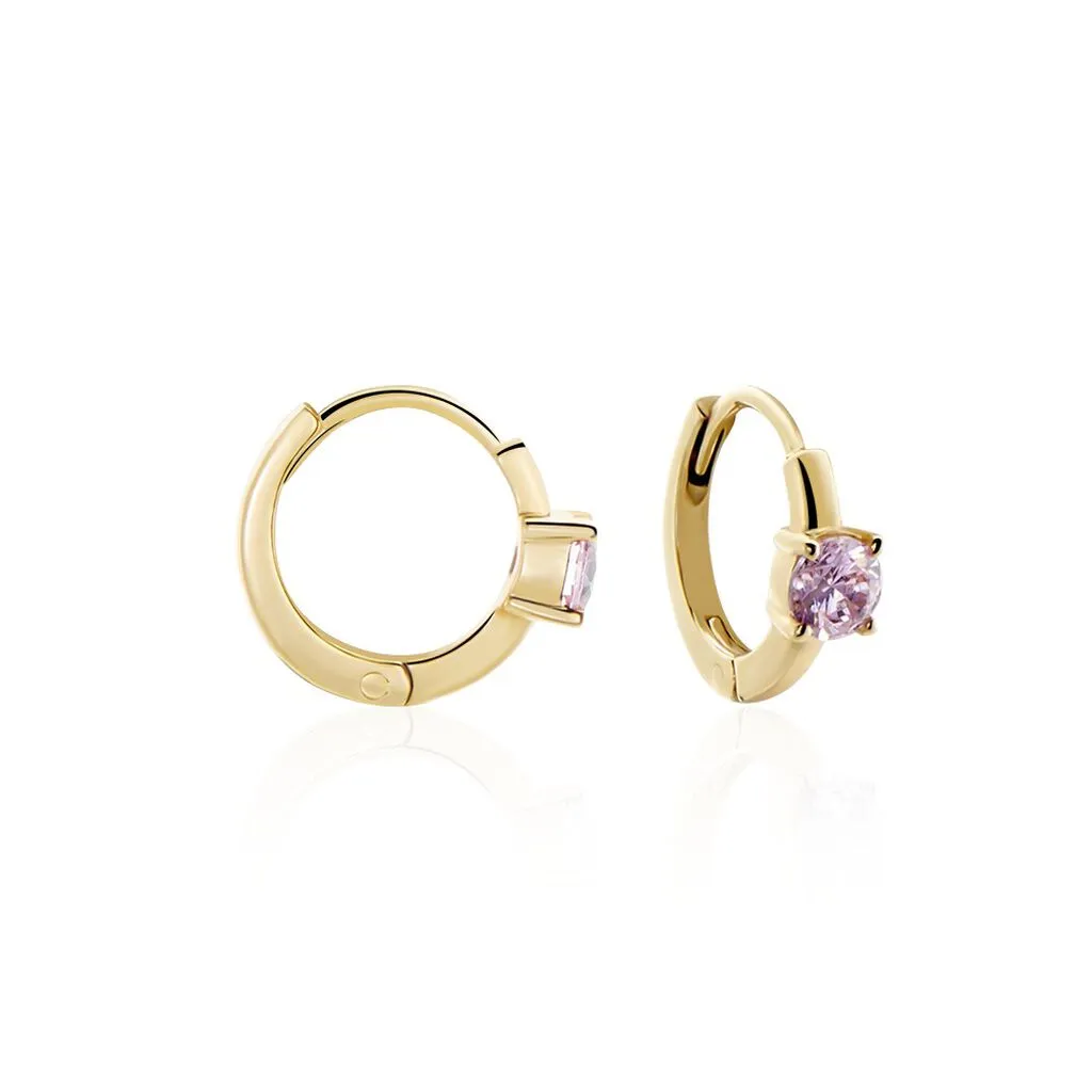Creoles Plaque Or Jaune Serti Griffes Oxydes De Zirconium Rose Diametre 9mm