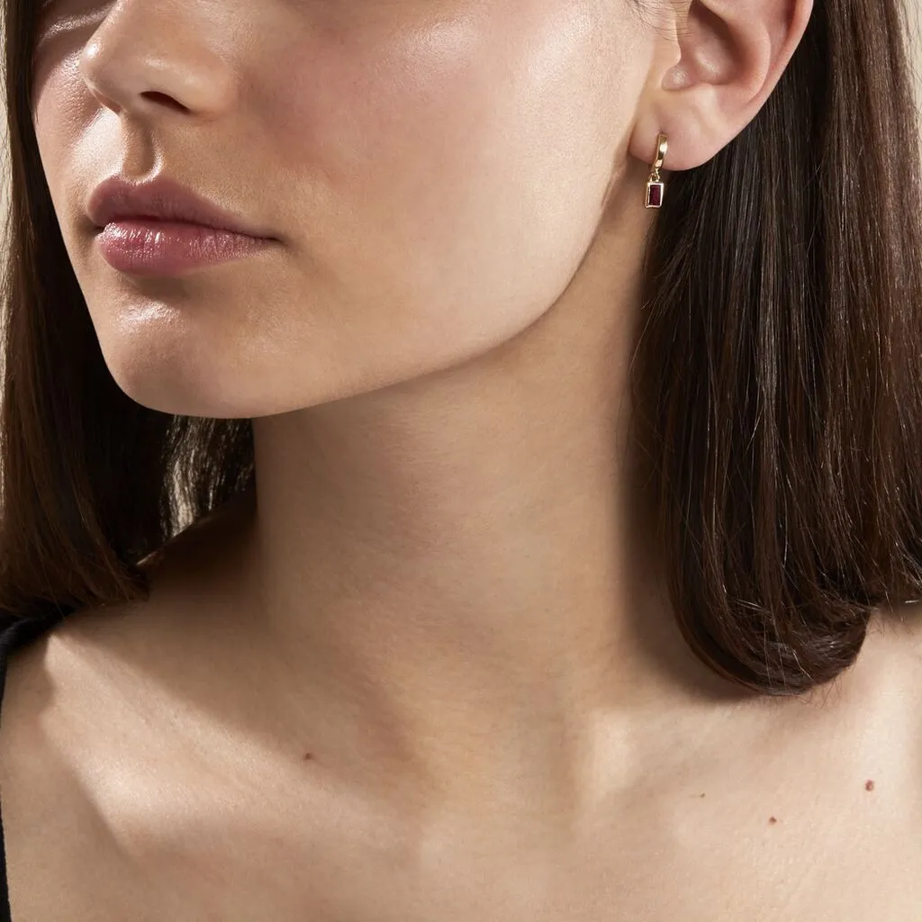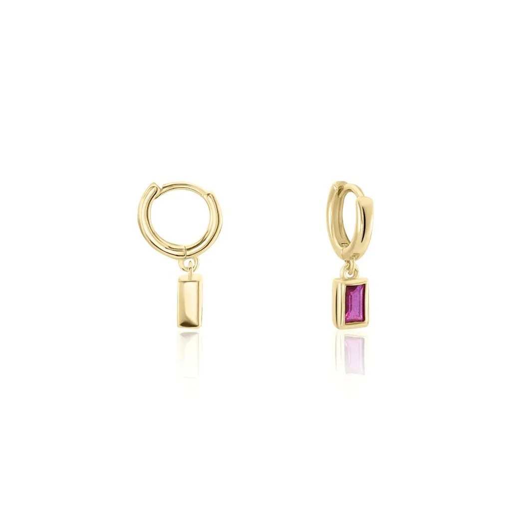 Creoles Plaque Or Jaune Pampilles Barrettes Serties Clos Spinelles Fuschias Diametre 10mm