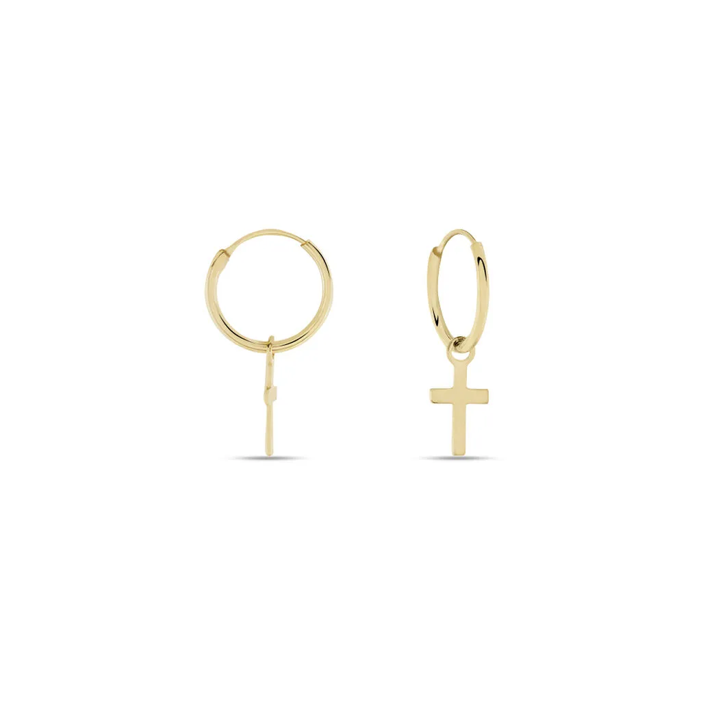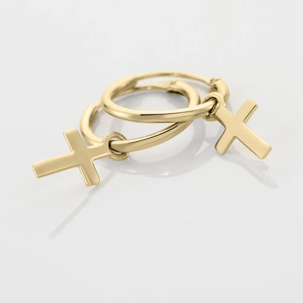 Creoles Plaque Or Ronde Pampille Croix Diametre 12mm Largeur 1mm