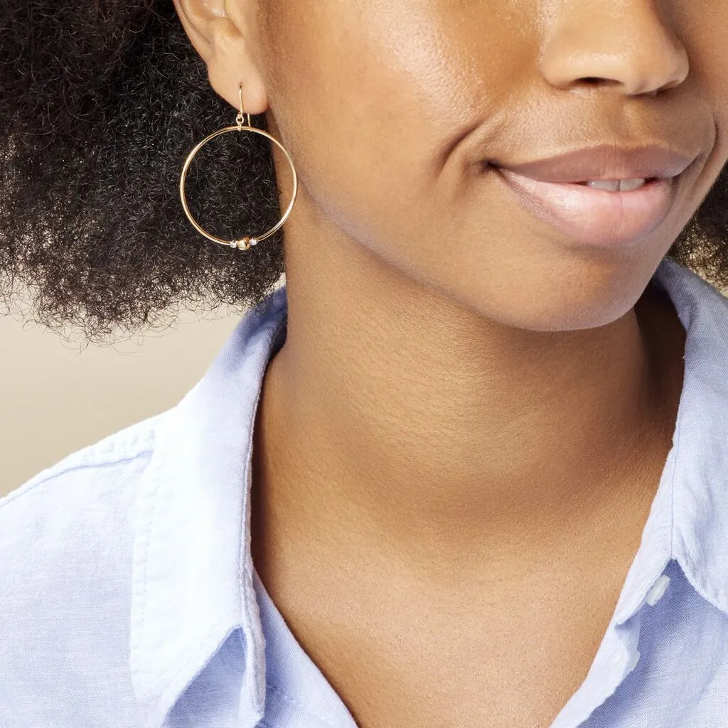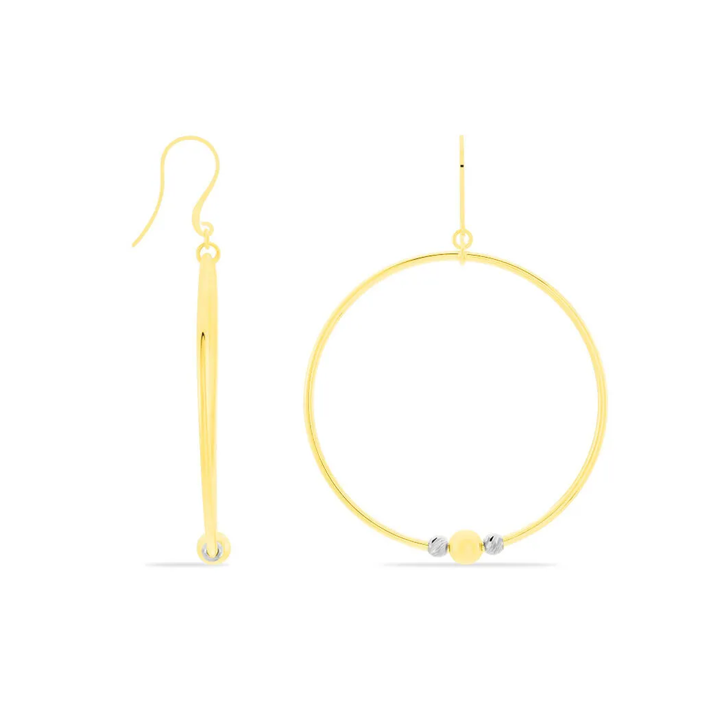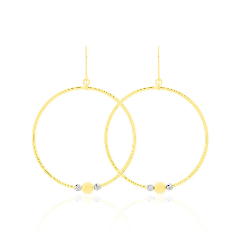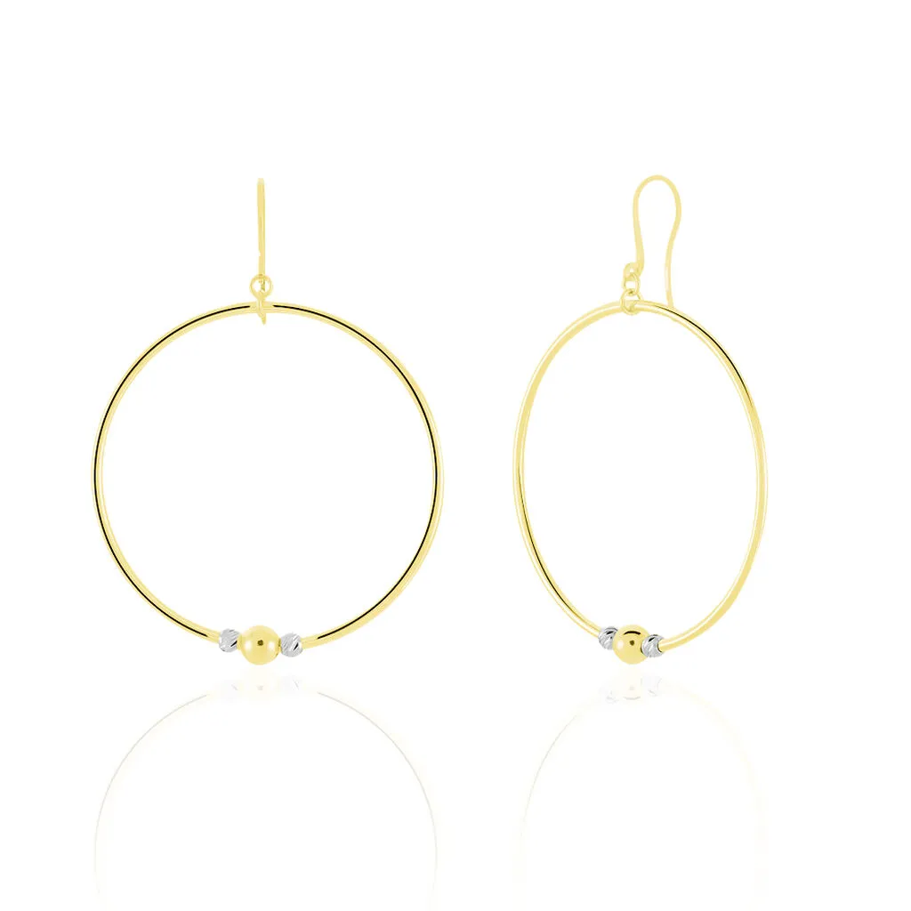 Créoles Or Jaune 375/1000 Rondes Billes Diamantées Bicolores Fil Diamètre 35mm Largeur 1.15 Mm
