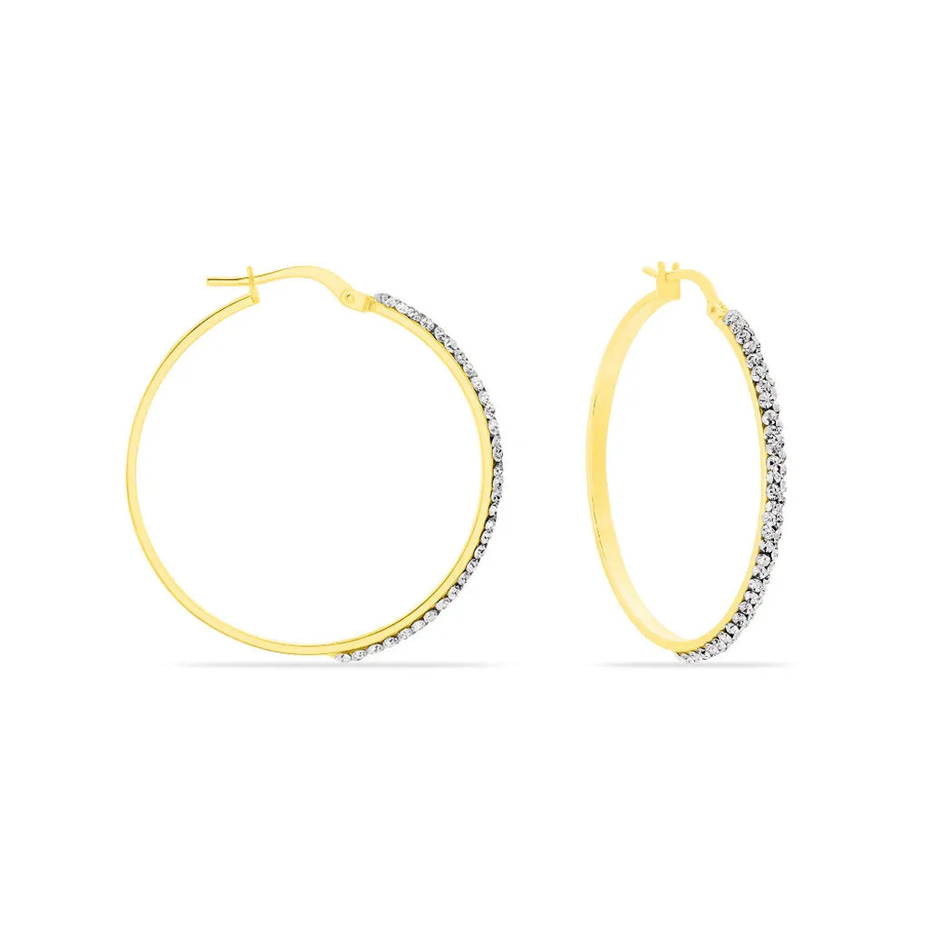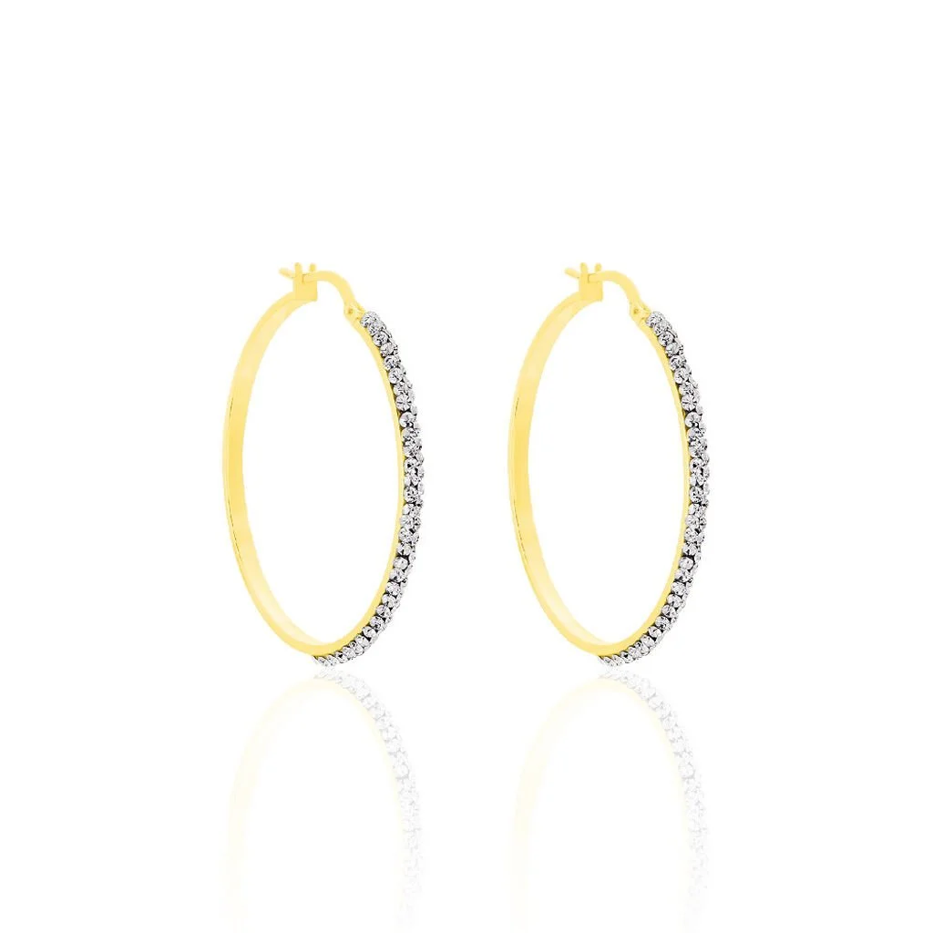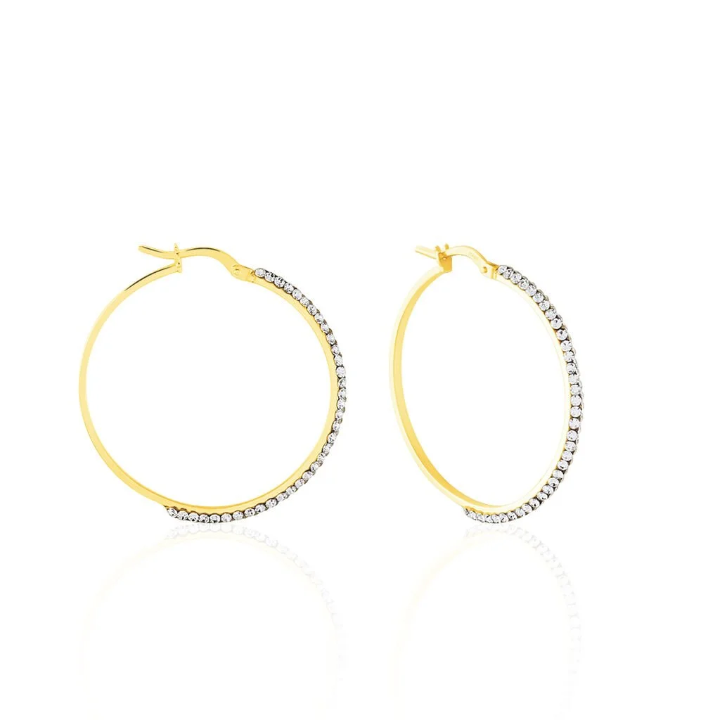 Créoles Or Jaune 375/1000 Fil Carré Strass Largeur 2mm Diamètre 30mm