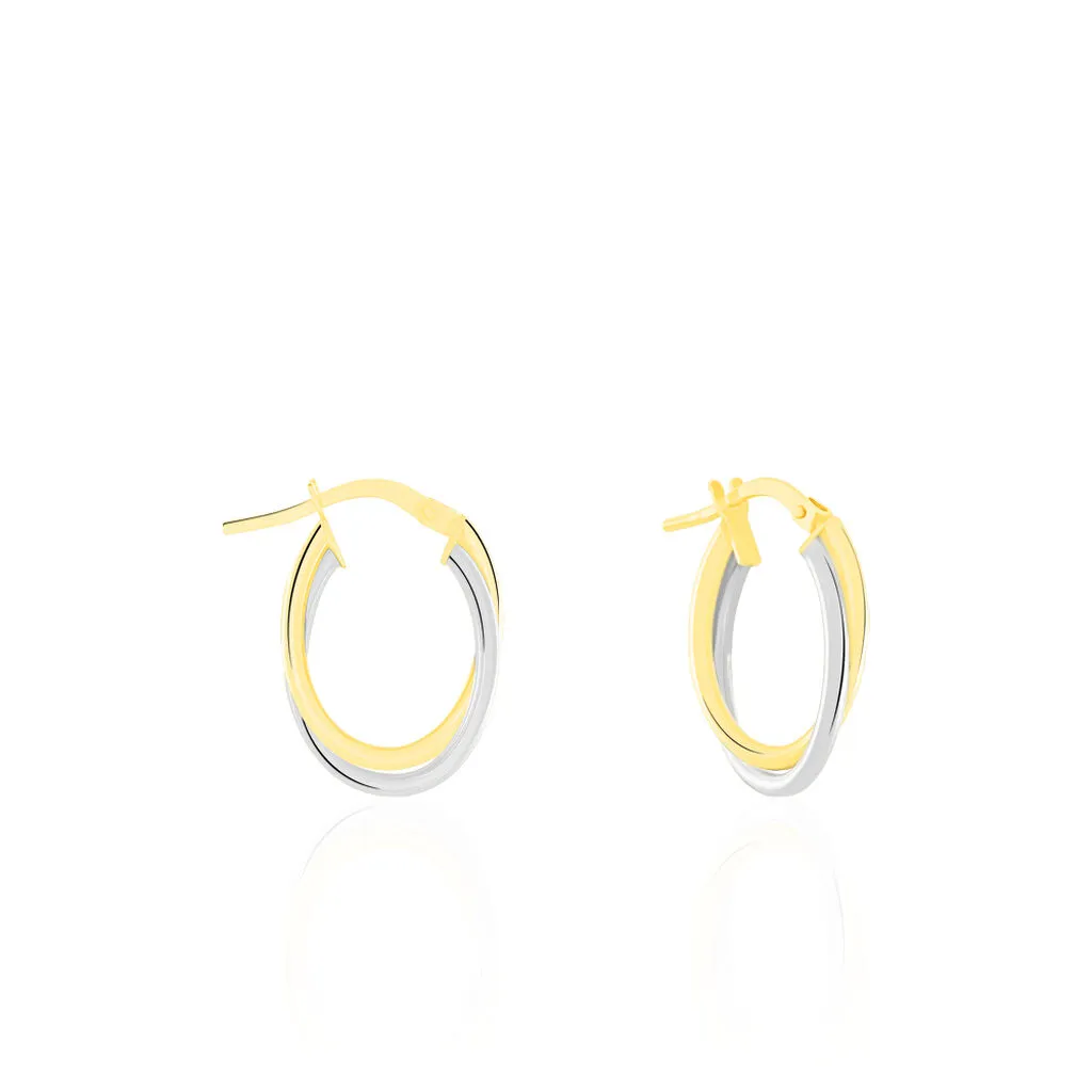Créoles Or Bicolore 375/1000 Ovales Croisées Fils Ronds Lisses Largeur 1.5mm Diamètre 14x10mm