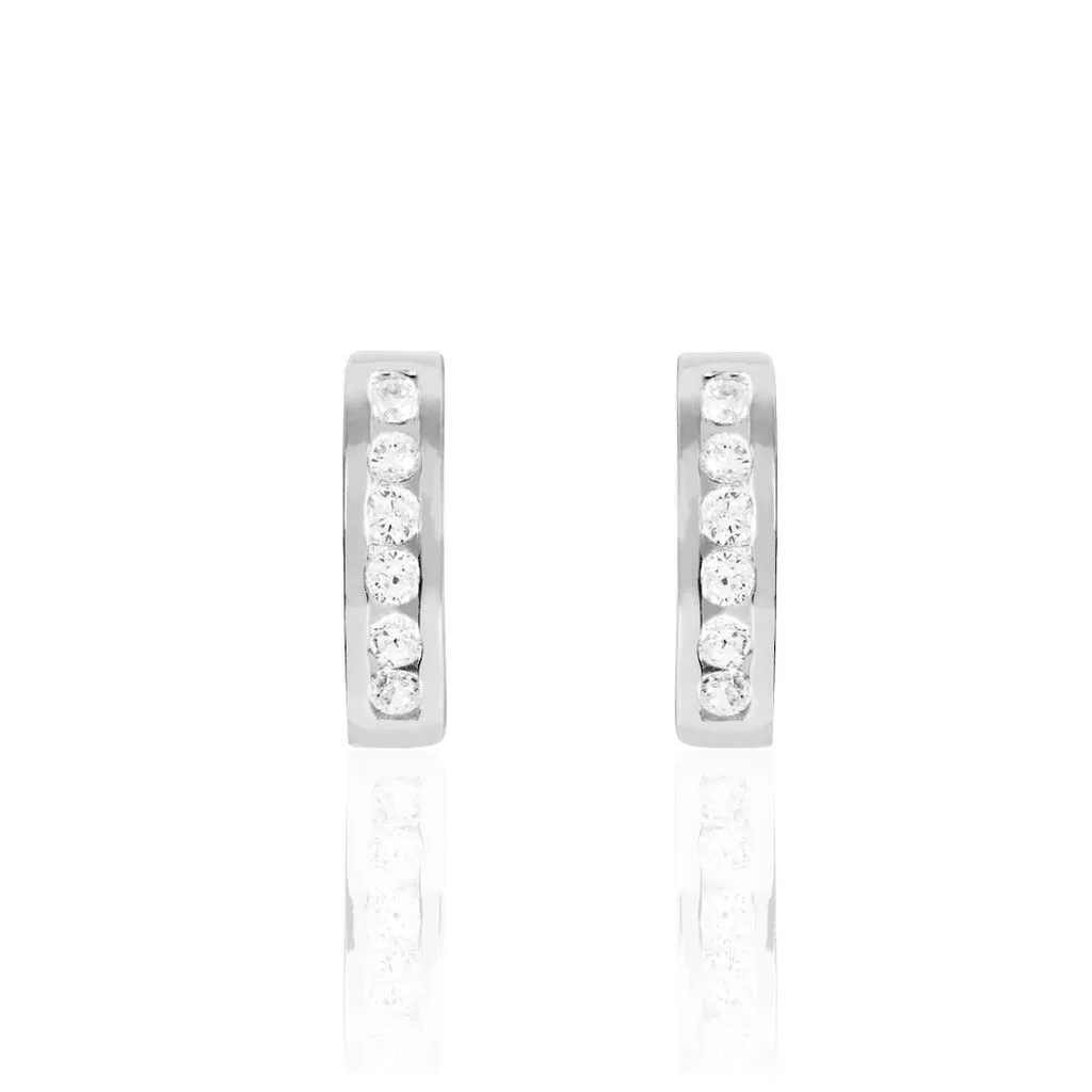 Demi Creole Argent Blanc 925/1000 Pm Oxydes De Zirconium Serti Rail Avec Poussette
