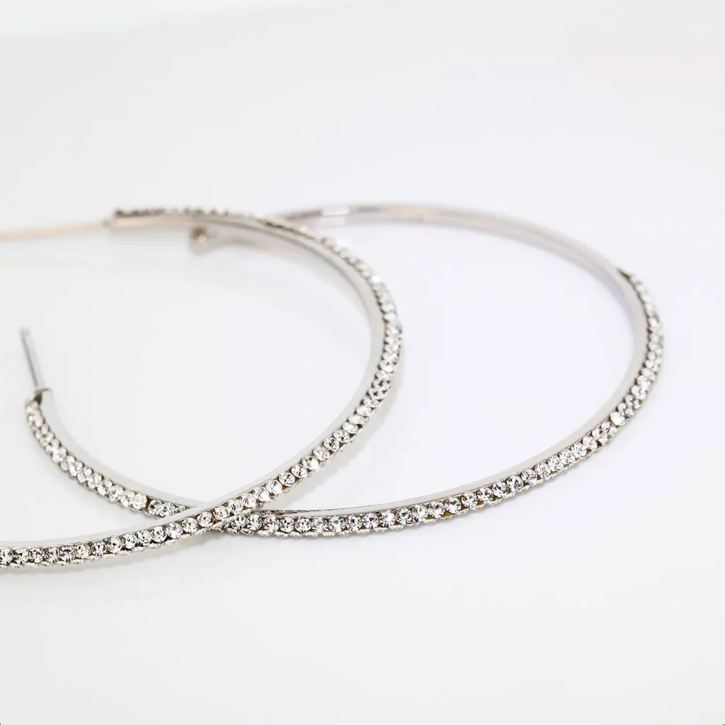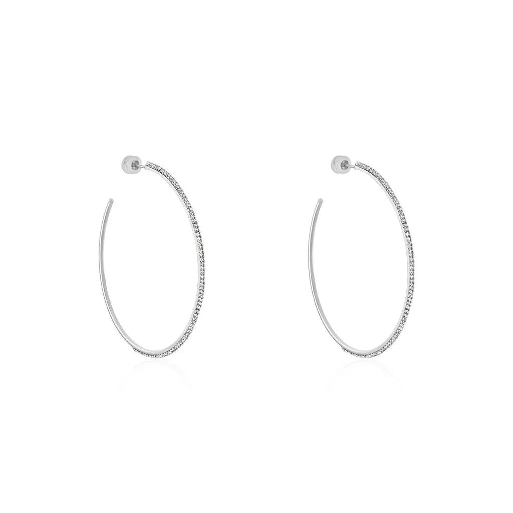 Créoles Or Blanc 375/1000 Fil Carré Strass Largeur 2mm Diamètre 60mm