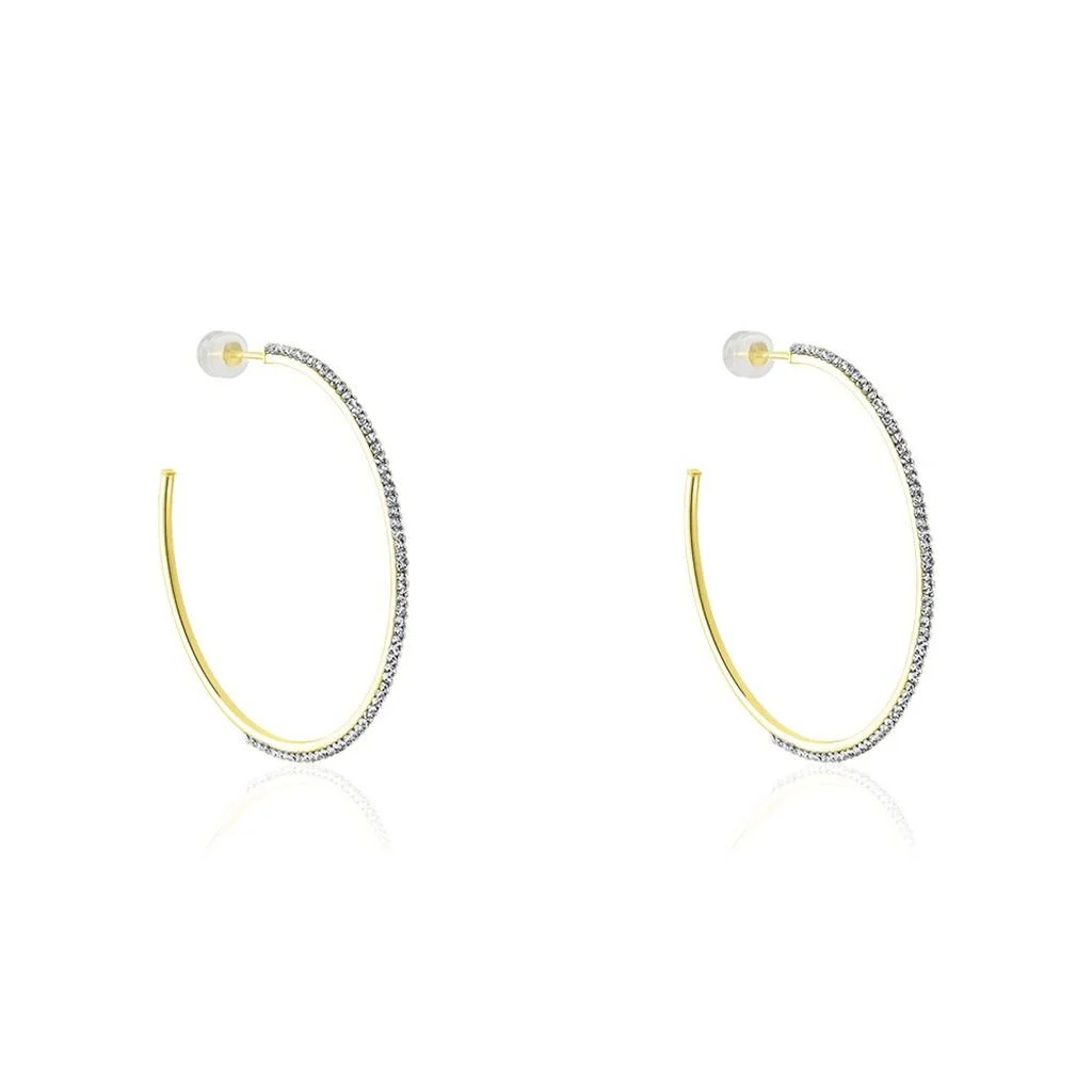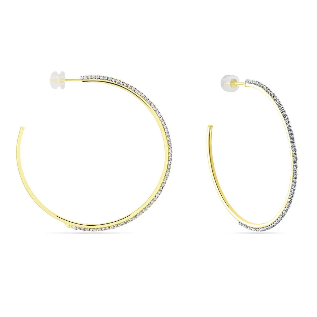 Créoles Or Jaune 375/1000 Fil Carré Strass Largeur 2mm Diamètre 50mm