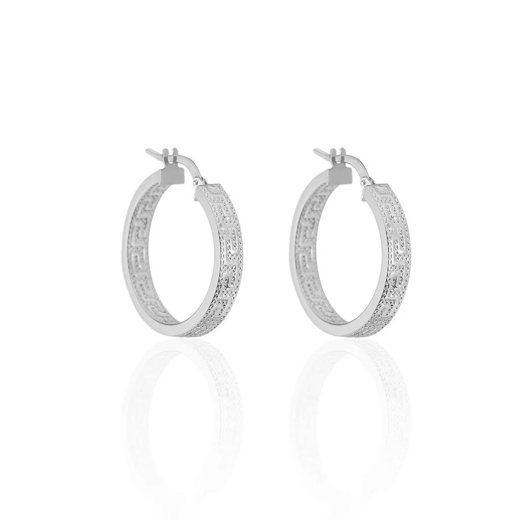 Créoles Or Blanc 375/1000 Fil Carré Grec Largeur 4mm Diamètre 20mm