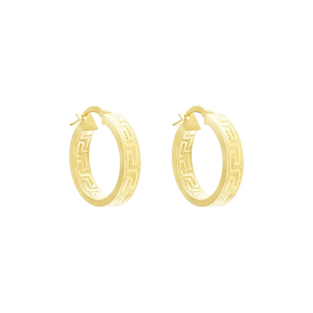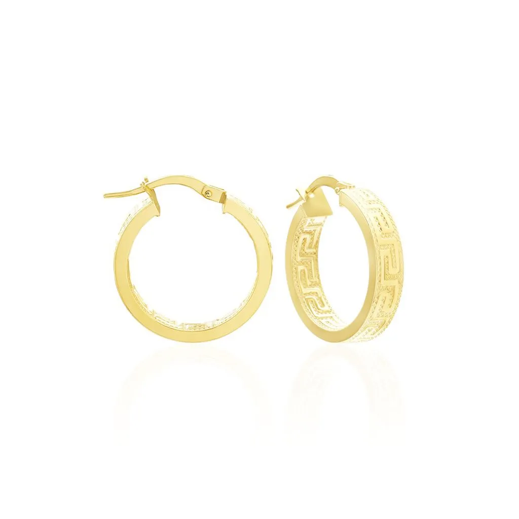 Créoles Or Jaune 375/1000 Fil Carré Grec Largeur 4mm Diamètre 15mm