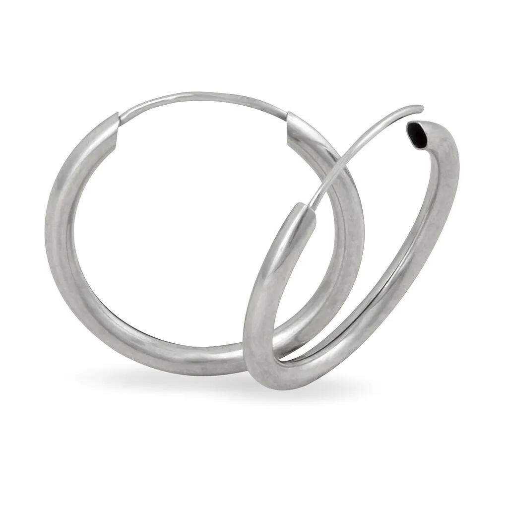 Créoles Or Blanc 375/1000 Fil Flexible Lisse Largeur 1.6mm Diamètre 15mm