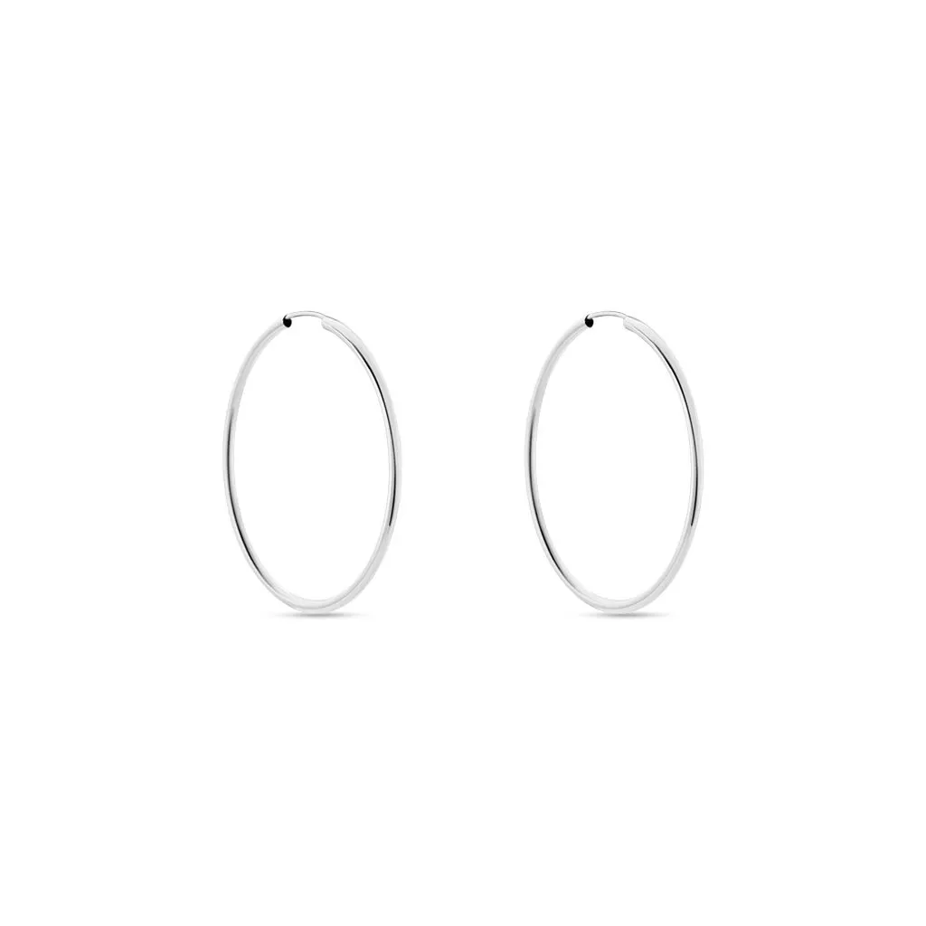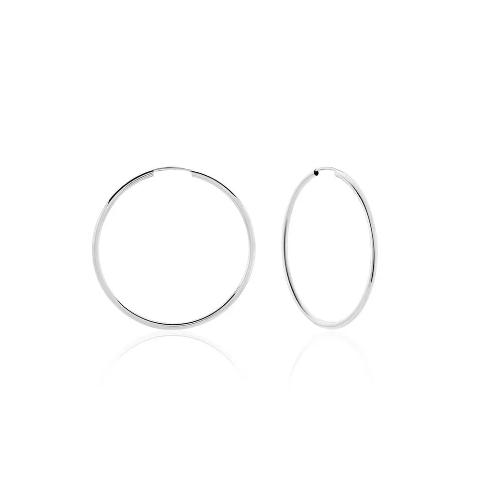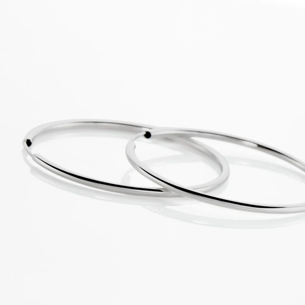 Créoles Or Blanc 375/1000 Fil Flexible Lisse Largeur 1.6mm Diamètre 35mm