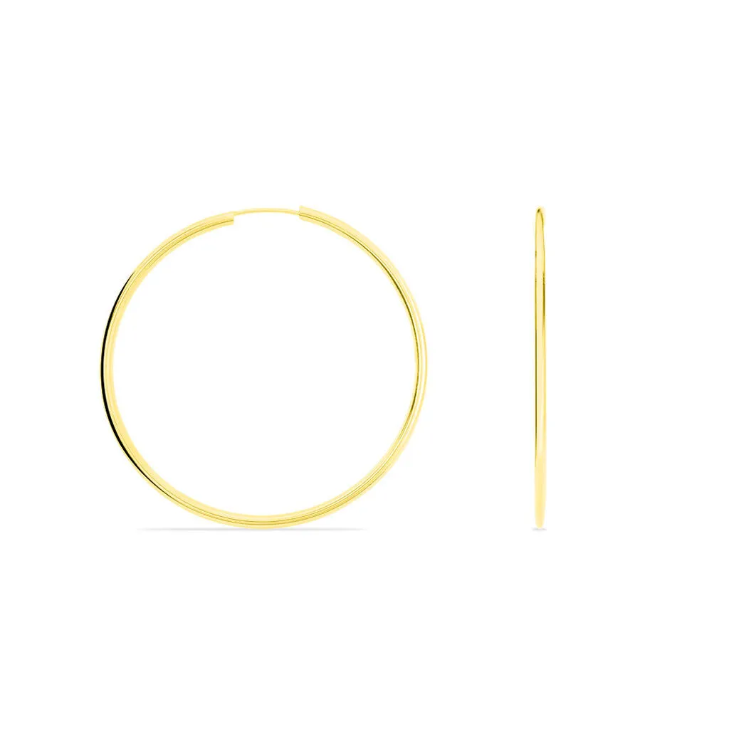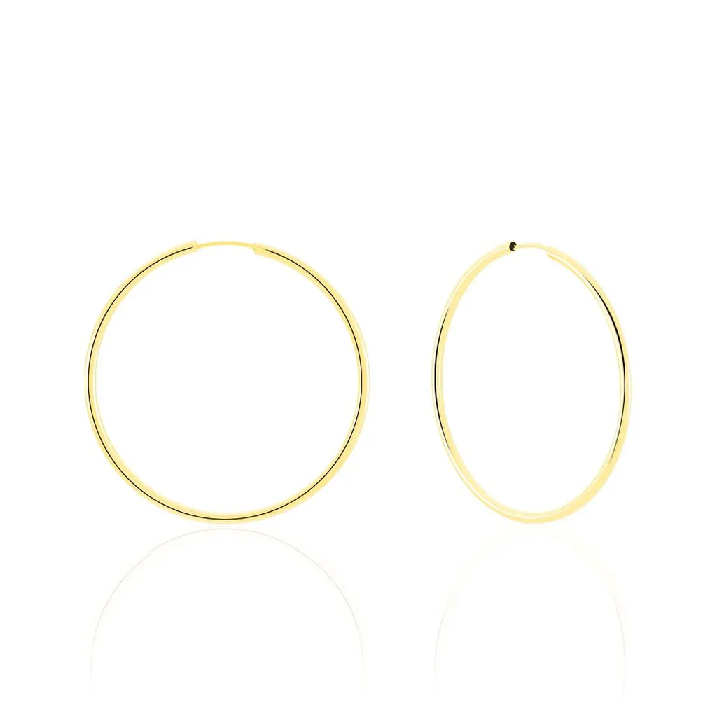 Créoles Or Jaune 375/1000 Fil Flexible Lisse Largeur 1.6mm Diamètre 40mm