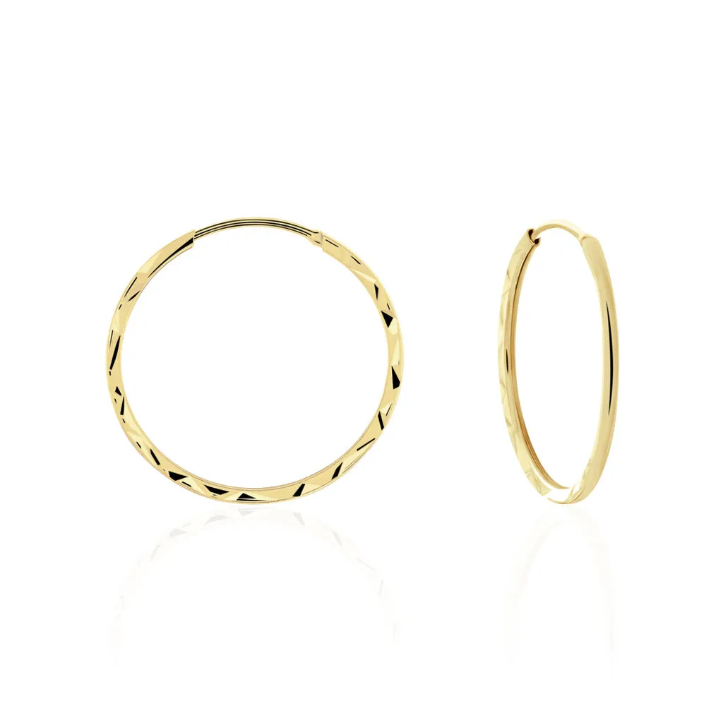 Créoles Or Jaune 375/1000 Fil Flexible Cisele Largeur 1.2mm Diamètre 17mm