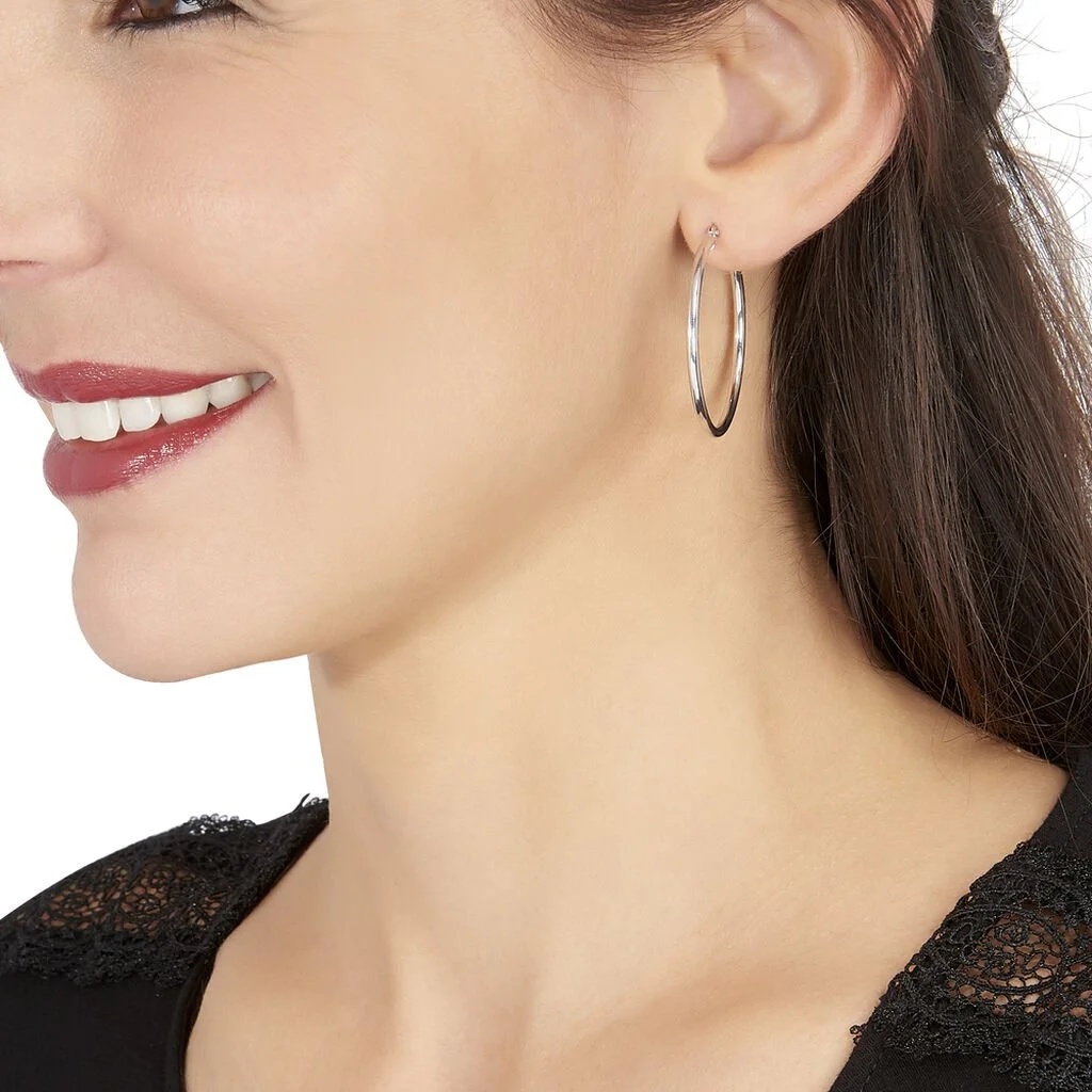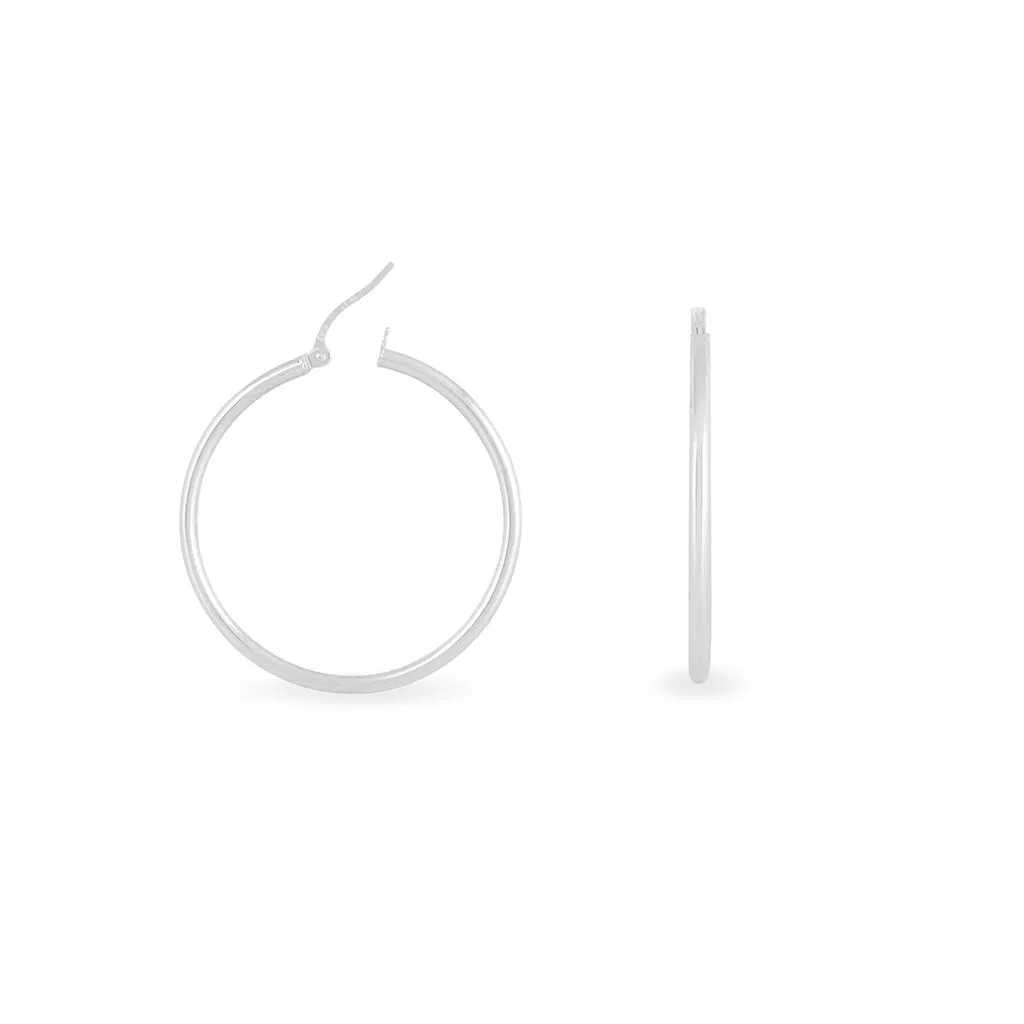 Créoles Or Blanc 375/1000 Fil Rond Lisse Largeur 2mm Diamètre 30mm