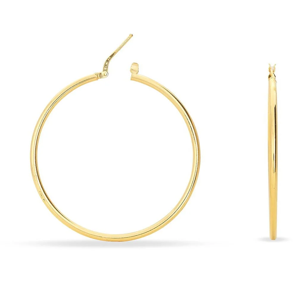 Créoles Or Jaune 750/1000 Fil Rond Lisse Largeur 2mm Diamètre 40mm
