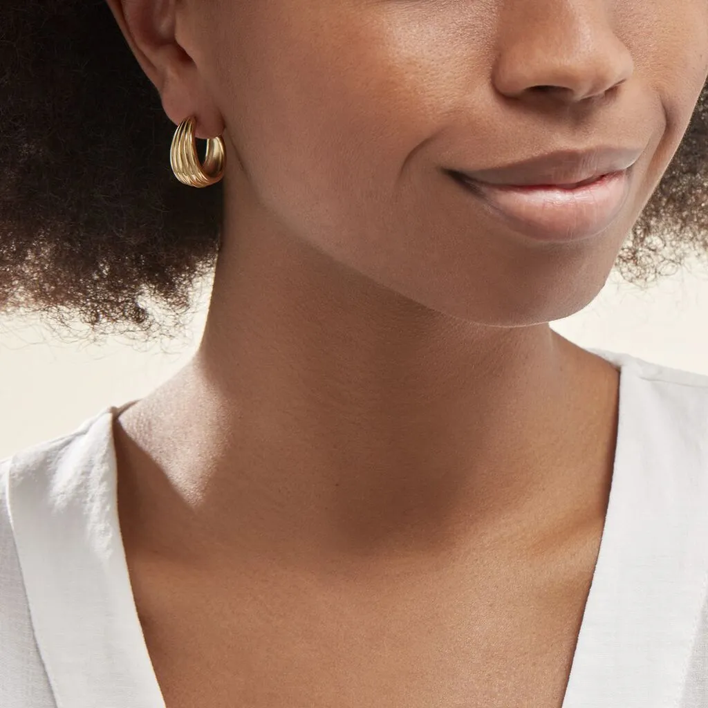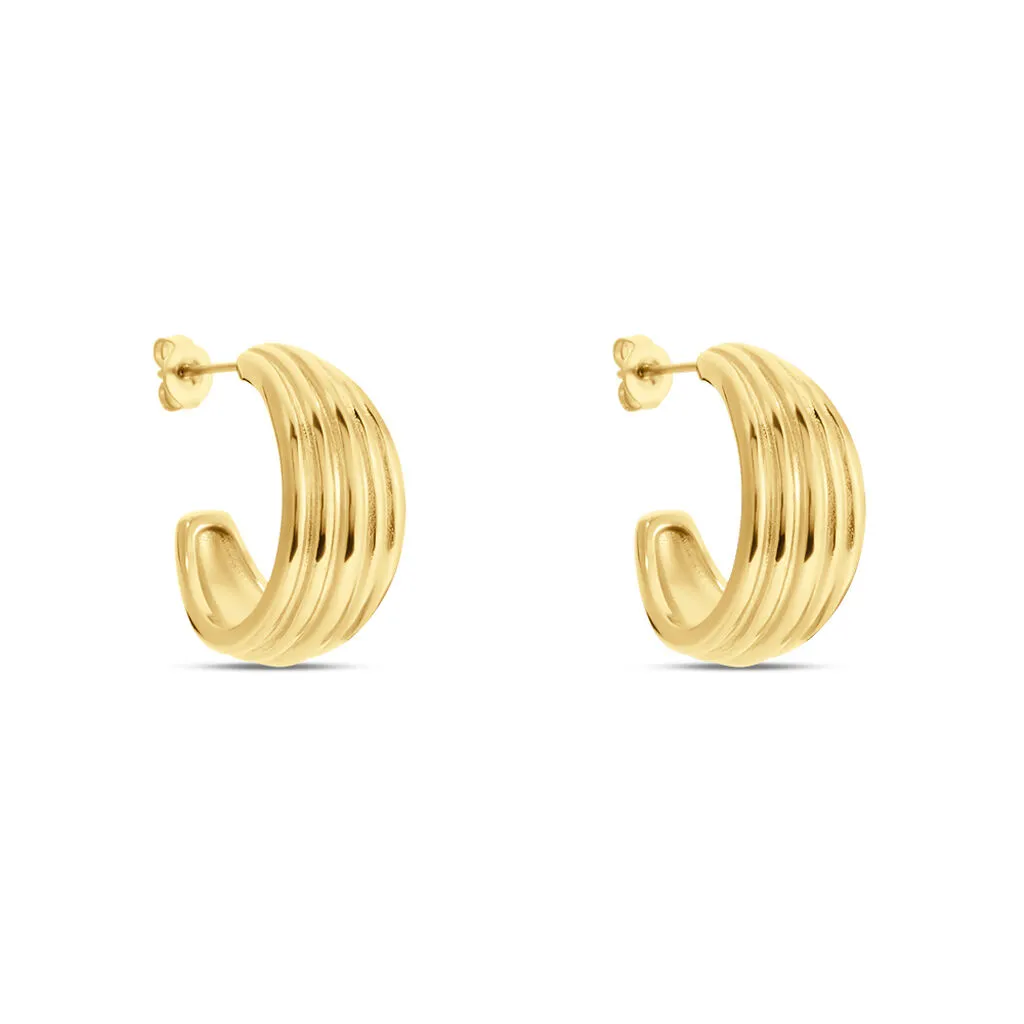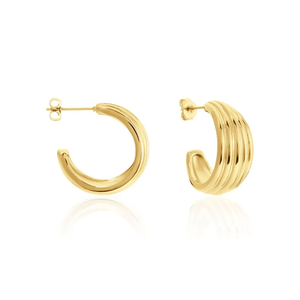 Demi Creoles Acier Dore Effet Strie Diametre 25mm