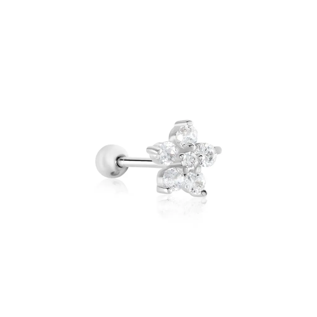 Piercing D’oreilles Argent 925/1000 Fleur Oxydes De Zirconium